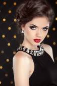 moda model brunetka portret. Biżuteria i fryzurę. elegancki
