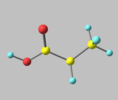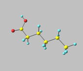Cząsteczka kwasu masłowego (butanowego) na szarym tle