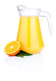 kieliszek soku pomarańczowego i pomarańczowe owoce z zielonych liści isolat
