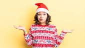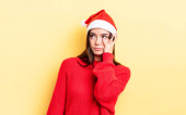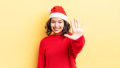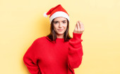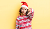 Zdjęcie "młoda Latynoska kobieta wygląda poważnie pokazując otwartą dłoń robi gest zatrzymania. Koncepcja Bożego Narodzenia" może być wykorzystywane do celów osobistych i komercyjnych zgodnie z warunkami zakupionej licencji Royalty-free. Obraz jest dostępny do pobrania w jakości wysokiej rozdzielczości do 5760x3840.