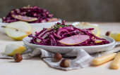Zdjęcie "Kolesław. Sałatka z rozdrobnionej białej kapusty, startej marchewki i rabarbaru z pomarańczowym sosem majonezowym w białej misce, jasnobetonowe tło." może być wykorzystywane do celów osobistych i komercyjnych zgodnie z warunkami zakupionej licencji Royalty-free. Obraz jest dostępny do pobrania w jakości wysokiej rozdzielczości do 5760x3840.