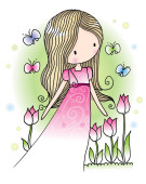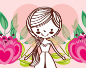 wektor kreskówka piękny słodkie dziewczyna trzymać różowe kwiaty