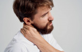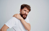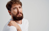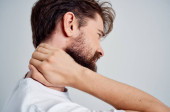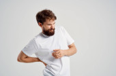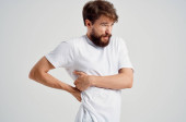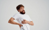 Człowiek z bólem pleców w studio, leczenie. Wysokiej jakości zdjęcie