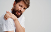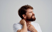 Zdjęcie "Człowiek z bólem pleców w studio, leczenie. Wysokiej jakości zdjęcie" może być wykorzystywane do celów osobistych i komercyjnych zgodnie z warunkami zakupionej licencji Royalty-free. Obraz jest dostępny do pobrania w jakości wysokiej rozdzielczości do 5760x3840.