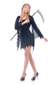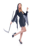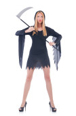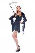 Zdjęcie "Młoda wiedźma z kosą odizolowana na białym" może być wykorzystywane do celów osobistych i komercyjnych zgodnie z warunkami zakupionej licencji Royalty-free. Obraz jest dostępny do pobrania w jakości wysokiej rozdzielczości do 5760x3840.