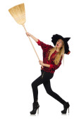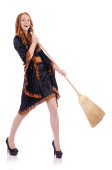 kobieta z miotły na biały