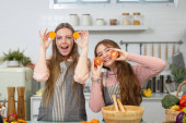 Matka i córki używają chleba do śpiewania i zabawiania się..