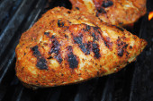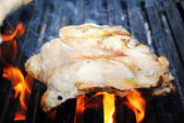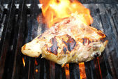 Chrupiące piersi kurczaka organicznych gotowanie na gorącym grillu