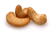 nakrętka trzy niełuskane nerkowca prażone, na białym tle