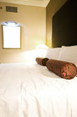 Podwójne łóżko w nowoczesnym pokoju wewnętrznym