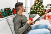 Zdjęcie "młody arabski człowiek gospodarstwa ramki stojąc przy choince w domu." może być wykorzystywane do celów osobistych i komercyjnych zgodnie z warunkami zakupionej licencji Royalty-free. Obraz jest dostępny do pobrania w jakości wysokiej rozdzielczości do 5760x3840.