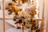 delikatny świąteczny wystrój w kolorze białym i różowym.