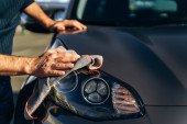 Zdjęcie "Przycięty widok człowieka samochód kontroli ilości napompowanych opon gumowych samochodu. Ręka z bliska trzymająca oponę i czarny samochód. Pomiar ciśnienia w oponach dla samochodów. Koncepcja przemysłu samochodowego " może być wykorzystywane do celów osobistych i komercyjnych zgodnie z warunkami zakupionej licencji Royalty-free. Obraz jest dostępny do pobrania w jakości wysokiej rozdzielczości do 5760x3840.