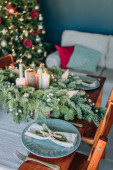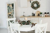 Piękne ustawienie stołu z dekoracjami świątecznymi w salonie