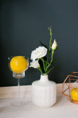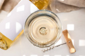 Butelka szklana zielonego wina z lampkami LED w wystroju domu