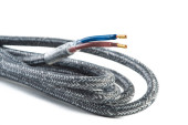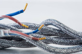 Zbliżenie plecionego kabla tkaninowego stosowanego w instalacji elektrycznej