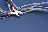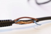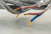 Zbliżenie plecionego kabla tkaninowego stosowanego w instalacji elektrycznej