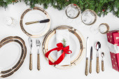 Zamknij piękne ustawienie stołu Bożego Narodzenia z dekoracjami