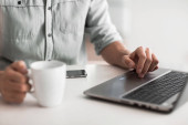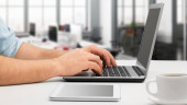 Koncepcja biznesowa z młodym człowiekiem pracującym na laptopie.
