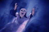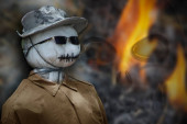 Zdjęcie "Strach na wróble w kapeluszu czarownicy z cieniem diabła na ciemnym niebie i błyskawicą w tle." może być wykorzystywane do celów osobistych i komercyjnych zgodnie z warunkami zakupionej licencji Royalty-free. Obraz jest dostępny do pobrania w jakości wysokiej rozdzielczości do 5760x3840.