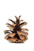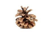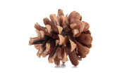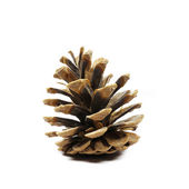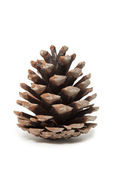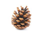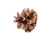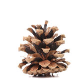 Suchy szyszek sosnowy bez nasion z cieniem. Jest izolowany na białym tle. Zbliżenie.