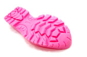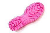 Drukarka 3D drukowane różowe podeszwy butów w naturalnych rozmiarach izolowane na białym tle