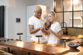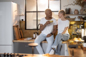 Zdjęcie "Wielorasowa para pijąca z kubków w kuchni" może być wykorzystywane do celów osobistych i komercyjnych zgodnie z warunkami zakupionej licencji Royalty-free. Obraz jest dostępny do pobrania w jakości wysokiej rozdzielczości do 5760x3840.