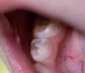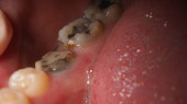 Uderzony ząb mądrości, dzięki któremu powstał kaptur gumy. Zapalenie dziąseł spowodowane niewybuchem trzonowca, makro-, anomalią