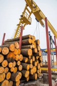 Kłody podnoszące z liną elektryczną w warsztacie obróbki drewna.