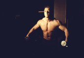 Zdjęcie "Facet robi ćwiczenia z hantlami" może być wykorzystywane do celów osobistych i komercyjnych zgodnie z warunkami zakupionej licencji Royalty-free. Obraz jest dostępny do pobrania w jakości wysokiej rozdzielczości do 5760x3840.