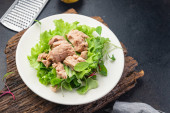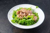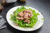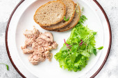 Wątroba dorsza W oleju ryby tłuszcz owoce morza omega-3 witamina aperitif świeże gotowy do jedzenia posiłek przekąska na stole kopia przestrzeń żywności tło rustykalny keto lub paleo wegetariańskie jedzenie nie mięso pescetarian dieta
