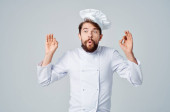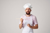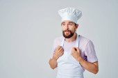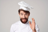 brodaty człowiek kucharz naczynia kuchenne gotowanie restauracja lekkie tło