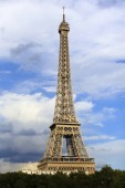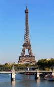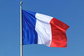 Flaga Francji, machając na wietrze, na niebieskim niebie
