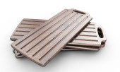 3D renderowanie piękny pusty drewniany stolik taca na produkty nakładki makiety, szablon na tle z porannym słońcem. tło, ton ziemi, naturalne, organiczne, przerwy na herbatę