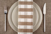 ręcznik w kratki beżowy i szary płytki. ręcznik kuchenny i płyty.