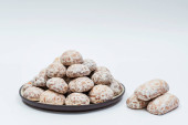 Piernik na białym tle. Rosyjskie narodowe pierniki. Pierniki zbliżenie na jasnym tle