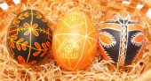 pisanek w koszyku słomy