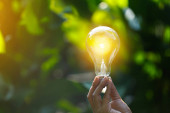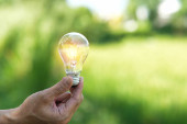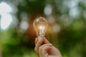 Żarówka ręczna, źródła energii odnawialnej, koncepcja energii naturalnej.