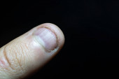 Pęknięta skóra na palcach, sucha skóra. Twój krem pomoże tym dłoniom. Brak witamin.