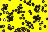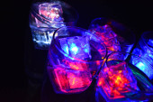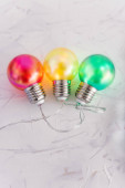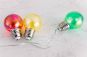 Serenevo-zielone żarówki z girlandy na zdjęciu z góry są ustawione w rzędzie.