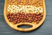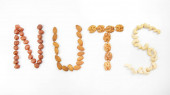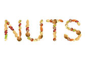 Słowo orzechy wykonane z różnych rodzajów orzechów. Witamina organiczna żywność białkowa