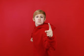 Zdjęcie "Chłopiec w czerwonym kapeluszu Mikołaja trzyma rękę na głowie i uderza w kapelusz." może być wykorzystywane do celów osobistych i komercyjnych zgodnie z warunkami zakupionej licencji Royalty-free. Obraz jest dostępny do pobrania w jakości wysokiej rozdzielczości do 5760x3840.