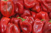 Zbliżenie czerwonej papryki na wystawie na rynku. Punkty ostrości selektywnej.