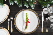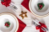 Zbliżenie nakrycia do stołu wakacyjnego nowoczesne wnętrze