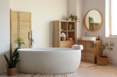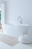 Zdjęcie "Biała wanna przy oknie w świetlicy. Projekt wnętrza" może być wykorzystywane do celów osobistych i komercyjnych zgodnie z warunkami zakupionej licencji Royalty-free. Obraz jest dostępny do pobrania w jakości wysokiej rozdzielczości do 5760x3840.