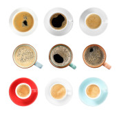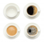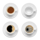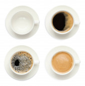 Zdjęcie "Zestaw z filiżankami smacznej aromatycznej kawy na białym tle, widok z góry" może być wykorzystywane do celów osobistych i komercyjnych zgodnie z warunkami zakupionej licencji Royalty-free. Obraz jest dostępny do pobrania w jakości wysokiej rozdzielczości do 5760x3840.