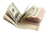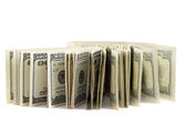 Pieniądze odizolowane od białych. Amerykański wzór dolarów. Górny pogląd na koncepcję biznesu.