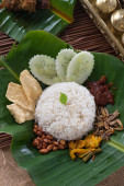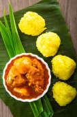 Kurkuma Glutinous Rice znana również jako Nasi Kunyit. Normalnie jedzone z suchym kurczakiem curry.