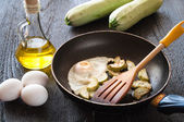 jajka sadzone i posiekany cukinia z pietruszki na talerzu