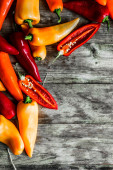 czerwone papryki na biały drewniany stół. rama.